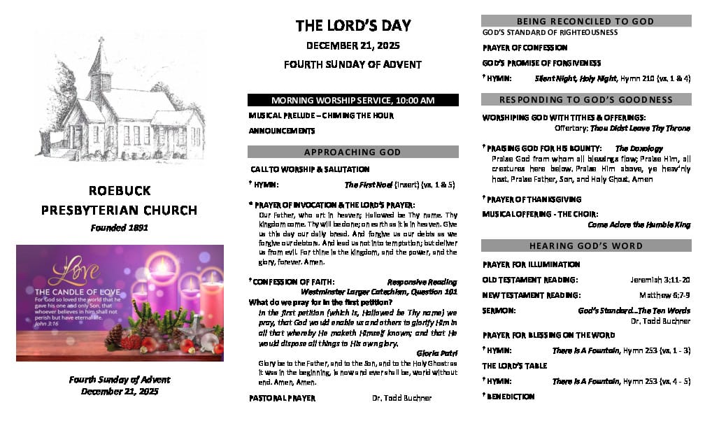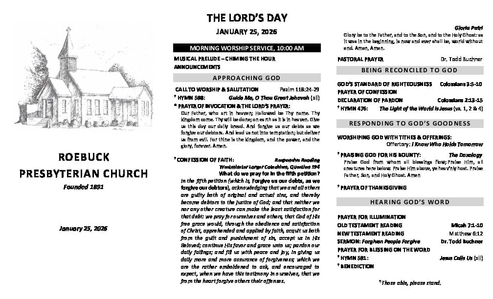 Roebuck PCA is a member congregation of the Presbyterian Church in America (PCA), a theologically conservative, Bible-believing denomination.